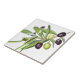 Ce beau carrelage en céramique va certainement améliorer les tables et les étagères. Le dessin comporte mon dessin d'un spray d'olive vert et noir Olives contre un simple arrière - plan blanc. Idéal pour les vérandas, les salles à manger et les cuisines.