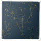 Carrelage en céramique avec élégantes ressorts délicats des fleurs d'orchidées et bourgeons aux contours dorés sur arrière - plan bleu marine. Belle tuile en céramique fleurie fleurie bosseuse. Collection d'orchidées bleues douces.
