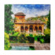 Jardins et piscines réfléchissantes du Palais Partal à l'Alhambra, Grenade, Andalousie, Espagne. Illustration de style aquarelle.