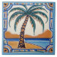 or désert palmier, or méditerranéen verdure plante, tropical exotique maison de plage, île maison vacances, hawaii hawaiien caribbean, jaune foncé bleu, vert palmiers, crème beige brun, chaud estivale scène, mer côtière océan