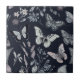 Un tuile en céramique de papillon botanique détaillé pour décoration maison. Cet élégant carrelage décoratif présente de beaux papillons sur un arrière - plan violet foncé avec des fleurs botaniques et des plantes.