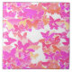 Un troupeau de papillons dans les tons roses profonds, fuchsia, orangé d'orchidées et de corail contre un arrière - plan blanc crémeux