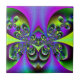 une tuile colorée de conception d'art de fractale des papillons vert-foncé avec l'arrière - plan pourpre