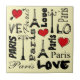 Paris design de texte pour la Saint-Valentin aux formes coeur rouge, Tour Eiffel et lampes de rue décoration arrière - plan jaune