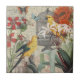 Cette image de perroquets et de fleurs jaunes est un beau collage moderne de plusieurs empreintes de peinture antique d'oiseaux, de fleurs et d'oiseaux.