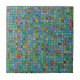Ce produit est fabriqué à partir d'un motif de tuiles carrés en mosaïque à texture majoritairement turquoise, avec des morceaux de rouge et de vert brillant dispersés dans un arrangement aléatoire. Les nombreux cercles concentriques colorés dans ce design abstrait unique lui donnent un look funky et rétro.