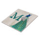 Peacock Bird Feather Turquoise Turquoise Vintage Victorien Monogramme initial Carrelage décoratif personnalisé