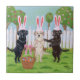 Pâques lunatique et drôle labrador retriever peignant peint par Naomi Ochiai du Japon. Le laboratoire noir et le laboratoire jaune et le laboratoire de chocolat sont peints dans l'image. Trois chiots de Labrador utilisent des oreilles de lapin sur leurs têtes et posent pour le tir de photo de Pâques avec les oeufs peints colorés dans les paniers. Peint dans le ton doux de ressort. Cadeaux gentils de Pâques pour les amoureux de les chiens qui aiment des chiens de labrador retriever ! ! Vous pouvez customiser le texte comme vous voudrez. Enlevez le texte et l'insertion témoin vôtre.