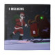 Croyez-vous au Père Noël ? présente le Père Noël sur le toit d'une maison après avoir livré des cadeaux. Le texte personnalisable "I BELIEVE" apparaît également.