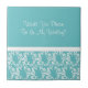 Pour accompagner notre dentelle turquoise et blanche sur invitations, postage personnalisé et plus encore, nous avons créé ceci sur un beau carreau en céramique; le parfait merci cadeau ou la manière intelligente de dire Save the Date! Changez le texte pour dire n'importe quoi.