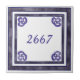 Un cadre pourpre et gris tiré par la main autour d'un numéro de maison pourpre avec les contours bleu-foncé et d'un motif dans les coins sur un arrière - plan blanc.