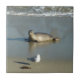 La zone côtière près de San Diego, en particulier la ville de La Jolla, possède une faune incroyable. Voici une photo nature avec un jeune phoque du port et une mouette près de l'océan. Également présenté comme le fond d'écran large "Le phoque du port à La Jolla" de www.mlewallpapers.com.