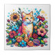 Pixel art représentant un chat orange et blanc assis dans un patch pour de jolis fleurs sauvages. Pixel art est de petites boîtes de couleurs qui composent une image. Il rappelle une résolution de jeu vidéo ou aiguille.