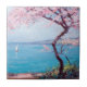 Ce dessin présente une peinture de l'artiste post-impressionniste roumain Kimon Loghi (1871-1952). Il dépeint une scène de plage de beauté dans la ville française branchée de Biarritz, située dans le golfe de Gascogne, sur la côte atlantique du sud-ouest de la France. C'est une destination touristique balnéaire de luxe connue pour son style de vie élégant et ses plages glorieuses. Au premier plan de l'image peut être vu un grand arbre de fleurs de cerisiers. Il y a un yacht qui navigue sur l'eau.