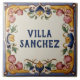 "plaque de nom de maison personnalisée", "plaque de nom de maison personnalisée", "panneau de texte personnalisé", "carreaux de céramique design espagnol", "style hispanique latino mexicain", "art folklorique traditionnel portugais italien", "fleurs rose or", "blanc vert jaune", "villa casa del della", "fleurs méditerranéennes antiques"