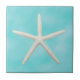 Carrelage en céramique avec une étoile de mer blanche sur arrière - plan bleu aqua. Cadre à utiliser comme un trivet, ou décorer un mur.