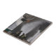 Un carreau de céramique représentant une photo de pompiers luttant contre un incendie de maison.