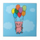 Comportant une illustration numérique de porc rose utilisant un groupe de ballons multicolores pour voler haut dans le ciel bleu nuageux.