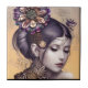 Carrelage en céramique dans le portrait d'une princesse aux cheveux noirs, à thème steampunk avec une couleur cuivre, métallique, fleur dans les cheveux, et ornements métalliques décorés