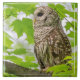 Par une journée printanière ensoleillée, une chouette barrée était perchée dans un érable.