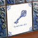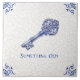 Célébrez une tradition intemporelle avec ce carreau en céramique « Something Old » (quelque chose d'ancien) orné d'une clé squelette antique ornée illustrée dans un bleu Delft classique. L'illustration combine un dessin à l'encre et au pâtre détaillé avec un ombrage bleu cobalt doux, encadré par des volutes traditionnelles dans les coins de style hollandais sur un fond émaillé craquelé vieilli pour un style authentique de poterie vintage. Un souvenir de shower de mariage ou de mariage significatif, ce carreau constitue un accent charmant pour un dosseret de cuisine de cottage, un présentoir de tablette de salle de bain, une vignette d'entrée ou un arrangement de mur de galerie.