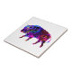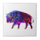 une oeuvre décorative d'un bison ou d'un buffle très coloré, avec toutes les couleurs de l'arc-en-ciel sur sa silhouette sur un carrelage en céramique.