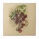 Une illustration d'un groupe de raisins rouges pourpres accrochant sur la vigne avec le feuille, sur une crème foncée ou un arrière - plan beige, d'une peinture vintage par l'artiste Catharina ou Catherine Klein, né 1861.