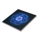 Présente une représentation fractale aux tons bleus du rayonnement de Tcherenkov dans l'eau. La lumière bleue dans l'eau qui entoure les réacteurs nucléaires est la radiation de Tcherenkov. Lorsqu'une particule chargée traverse un milieu à une vitesse supérieure à la vitesse de la lumière dans ce milieu, un rayonnement faible est produit par le milieu. Dans l'eau, les particules chargées excitent les molécules d'eau, qui retournent ensuite à leur état normal en émettant des photons de lumière bleue. Parce que la particule se déplace plus vite que la vitesse de la lumière dans l'eau, elle peut déclencher une cascade de photons qui sont en phase l'un avec l'autre et peuvent interférer de manière constructive pour former une lumière bleue visible. C'est un peu analogue à un boom sonore dans l'atmosphère. Cet effet a été observé par le scientifique russe Pavel Tcherenkov en 1934 quand on lui a demandé d'examiner les effets de la radioactivité dans les liquides. Cherenkov a remporté un prix Nobel en 1958.