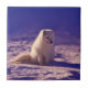 Le renard arctique s'est assis dans la neige et a jeté une ombre dans la lumière qui s'estompe.