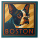 Portrait rétrograde audacieux de Boston Terrier, qui capte le manteau caractéristique de la race, de grands yeux ronds et des oreilles dressées. Connu comme le "Gentleman américain", ce petit chien amical et intelligent est apprécié pour son charme et sa personnalité spirituelle.