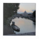 Un beau coucher de soleil avec une basilique, un pont et une rivière sereine à Rome, Italie.