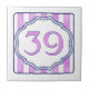 Un cadre tiré par la main de lavande autour d'un numéro de maison rose sur un arrière - plan rose et blanc rayé avec les contours bleu-foncé.