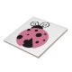 Bactérie mignonne rose avec taches noires et antennes bouclées. Customiser en changeant la couleur arrière - plan.
