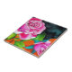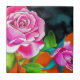 D'une aquarelle d'art originale de l'artiste Sacha Grossel, ce tableau lumineux et vibrant représente deux roses roses vives en fleur contre un arrière - plan à texture orange et foncée. Contemporain et moderne, ce design est coloré et tonifiant.