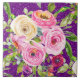 Des roses d'aquarelle luxuriants dans les tons rose, rouge, pêche et crème fleurissent sur un arrière - plan parties scintillant violet.