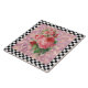 Une jolie illustration botanique de roses roses roses vintages sur arrière - plan floral rose avec bordure motif en damier noir et blanc crée un joli design de thème de jardin.