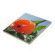 Design : Eine a écrit Mohnblüte mit einem grünen Blatt vor blauem Himmel
