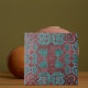 Décor original unique en carreaux de carreaux avec des ornements abstraits vert turquoise sur un arrière - plan en détresse rouge foncé.