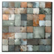This dramatic design features a mosaic of rectangular and square shaped tiles in random sizes and natural earth tones with soft sage green. The variation throughout each tile mimics an authentic aged appearance with scuff marks and warm, well-loved appearance to bring rustic charm to any interior setting. This pattern is part of a coordinated trio that can be mixed and matched for a rich, natural-looking variation across multiple tiles, ideal for a country farm house look as kitchen or bathroom decor. Search ID1187a, b and c to see each of the variations. Note: design contains generative content.