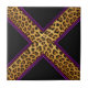 Empreinte de léopard à la mode X de safari sur l'arrière - plan noir, décrit dans les lignes des pourpres roses et.