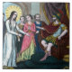 Du 24 au 25 mai 1802, dans la Catacombe de Saint Priscilla sur la Via Salaria de Rome, des restes humains furent découverts dans un tombeau scellé de trois tuiles. Les carreaux étaient décorés de palmiers, de flèches, d'ancres et d'une feuille de lierre et portaient l'inscription correctement réarrangée : "Pax Tecum Filumena", c'est-à-dire "Paix sois avec toi, Philomena". + Selon les apparitions de la sainte elle-même, St. Philomena (c. 291-c. 304) était un jeune Grec consacré vierge qui a souffert martyr pendant le règne de Dioclétien. Après avoir rejeté l'empereur romain pour amour du Christ, elle a été soumise à une série de tortures (comme la flagellation) et de tentatives sur sa vie (être abattue avec des flèches et noyée avec une ancre attachée à son cou). Quand ces tentatives n'ont pas réussi à la tuer, elle a finalement été décapité. + L'image de ce carrelage en céramique provient d'une lithographie du milieu du 19ème siècle utilisée comme plaque dans un livre non identifié et représente St. Philomena en procès devant l'empereur. + Canonisée par le Pape Grégoire XVI mais jamais inscrite dans la martyrologie romaine, le culte approuvé par l’Église de St Philomène a été supprimé en 1961, bien qu’elle ait été vénérée pendant plus de 150 ans et par un certain nombre de personnes qui eux-mêmes sont devenus des saints pas moins - St. John Vianney et St. Damien de Molokai pour ne citer que deux. (Pourquoi ? C’est une longue histoire, trop longue pour entrer ici.) Néanmoins, le petit saint bien-aimé jouit encore d'une vénération privée généralisée par les laïcs. + St Philomena est la patronne des bébés, des enfants et des jeunes. Connue comme une "Travailleuse Merveilleuse (Thaumaturga)", elle est invoquée dans des coques désespérés et des causes perdues. "A Philomène, rien n'est refusé." + Fête : 11 août + Crédit photo (#1 de 4) : Saint Philomène devant Deocletian (sic), Adrien-Nepomucène Dembour (1799-1887) et Charles-Nicolas-Auguste Gangel (1798-1860), Imprimantes, Metz, France, 1840/1852, Metz Media Libraries, FIE IPO 008, Document placé sous licence ouverte Etalab. Domaine public.