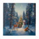 Carreau Scene d'arbre de Noël Cute Deer Fawn Snowman