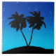 Carreau Silhouette de palmier sur Bleu du soir avec étoile