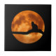 Cette conception présente une image élégante montrant le contour d'un chat sur la branche d'un arbre. La lune dans l'arrière - plan est pleine, brillant orange vif. Dans de nombreuses cultures occidentales, les chats noirs ont souvent été considérés comme des êtres mauvais, en particulier soupçonnés de travailler avec les sorcières et les arts sombres, ce qui explique pourquoi les images d'eux sont souvent vues à Halloween.