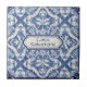 Snowflake pattern blue & white holiday custom name ceramic tile. You can edit the text in the center, change the font, change the color, size, etc. Gift these tiles as custom name coasters for each family member, for friends or teams, use them for home accents on your bookshelves, in your living rooms and bedrooms, or as mosaic wall art with other tiles. Or leave the central space empty, and use as decorative backsplash ceramic tiles.