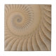 Tuiles en céramique avec "Undertow" de Susan Wallace. Copyright © 2008, Susan Wallace. Une spirale rampante texturée d'un motif spiral en miroir, suggérant des coquillages pris dans une vague; sable doré aux reflets gris.