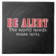 Soyez Alerte ! Le monde a besoin de plus d'éducation. Ne vous prenez pas trop au sérieux parce que notre monde est dans une grave pénurie d'apprentissage. Alors nous osons que vous en soyez un. Notre design de texte en rouge et blanc sur noir fait une déclaration audacieuse. Quelle est votre devise ?