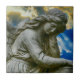 La grande photo a tiré d'une statue d'ange avec des rayons du soleil par les nuages à l'arrière-plan.