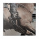 Une photo artistique dans la couleur amortie montre un cheval obtenant stimulé pendant qu'il arrondit un baril.