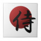 Le symbole japonais de manuscrit de kanji pour les samouraïs de mot contre un soleil rouge ajoute la fusée orientale à cette conception asiatique créative.